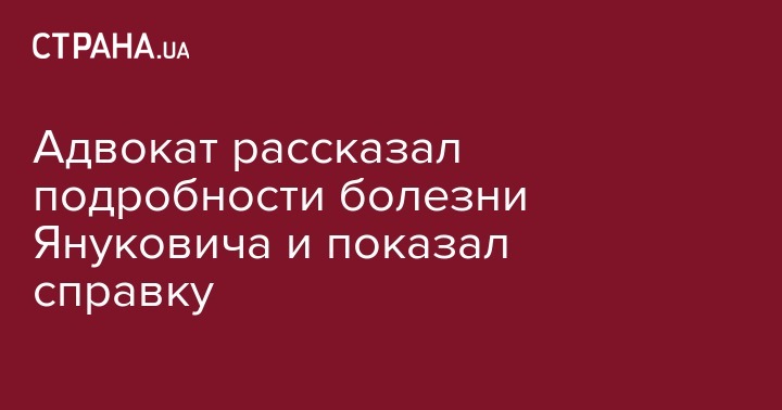 Адвокат добавил, что у него есть справка Януковича с предварительным диагнозом. Окончательный будет установлен сегодня или завтра. Приблизительный срок лечения Януковича составит 2-3 недели.