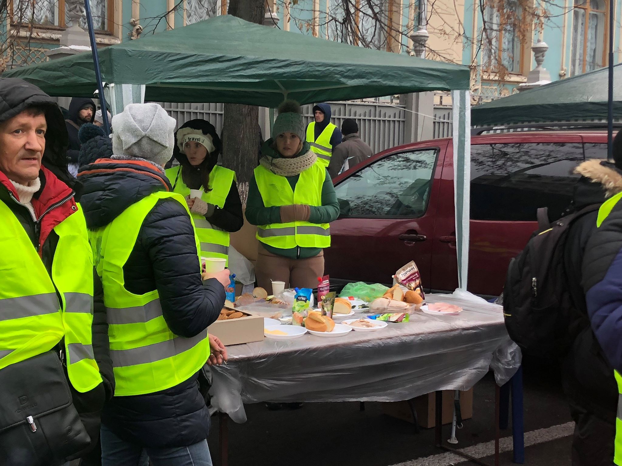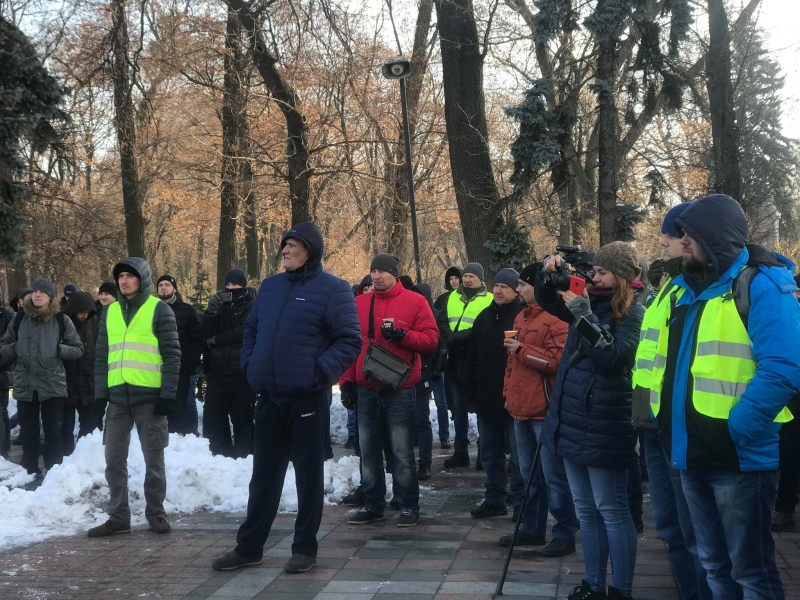 9:05  "Евробляхеры" одеты в желтые светоотражающие жилеты - как в Европе, где идут протесты против повышения цен на бензин. Под Радой развернуты палатки, где раздают еду.