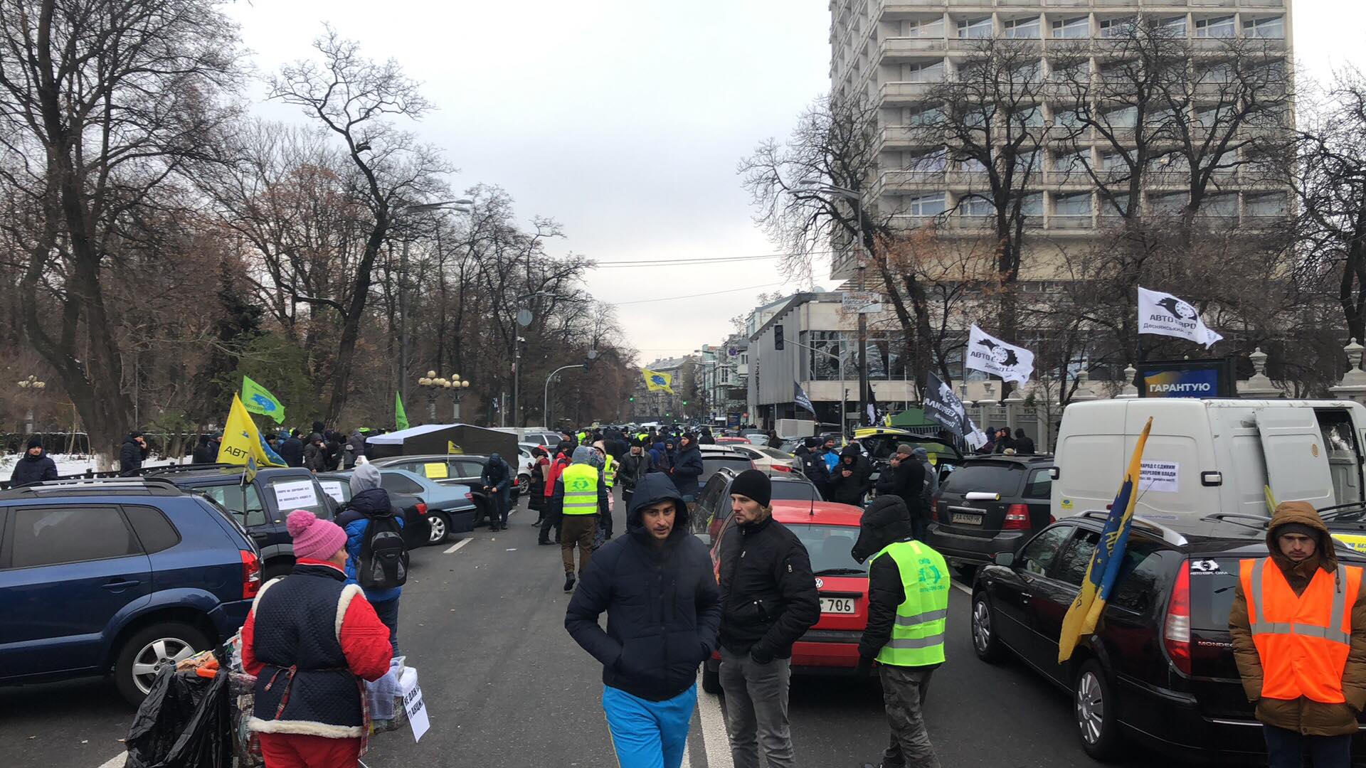 Утром 20 ноября в Киеве стартовала анонсированная ранее акция протеста евробляхеров. По состоянию на 09:00 автомобилисты перекрыли улицу Грушевского от перекрестка с Шелковичной до Липской. Об этом сообщает корреспондент "Страны" с места событий.
