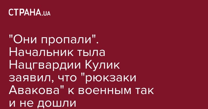"Они пропали". Начальник тыла Нацгвардии Кулик заявил, что "рюкзаки Авакова" к военным так и не дошли