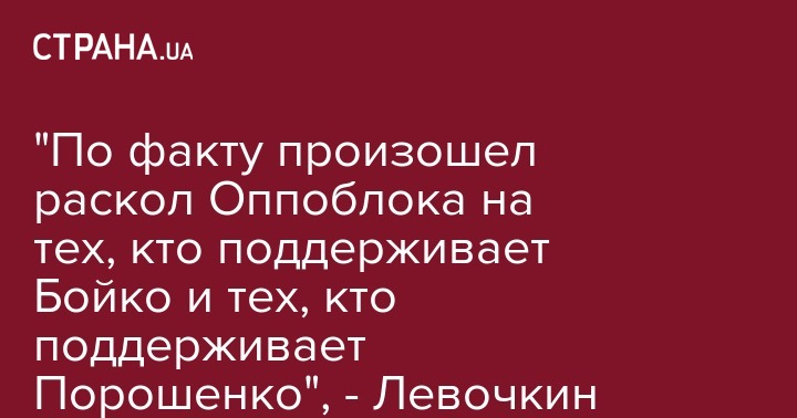 "По факту произошел раскол Оппоблока на тех, кто поддерживает Бойко и тех, кто поддерживает Порошенко", - Левочкин