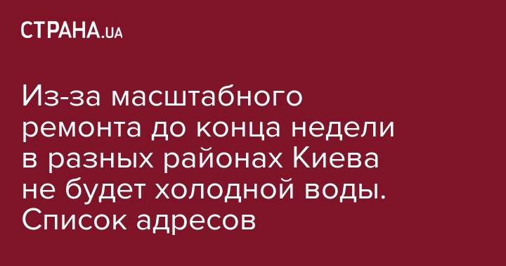 Из-за масштабного ремонта до конца недели в разных районах Киева не будет холодной воды. Список адресов