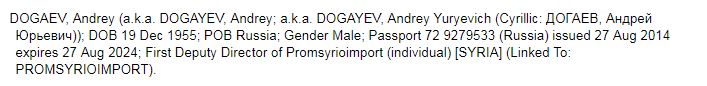 "Промсырьеимпорт" находится в собственности российского государства. Оно подведомственно Министерству энергетики России. Фирма Global Vision Group названа в сообщении Минфина США российской компанией, которая принадлежит сирийскому бизнесмену Мохамеду Альшвики.