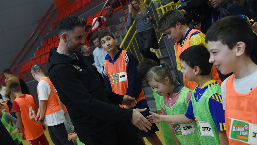 В первой тренировке приняли участие 25 ребят. Заниматься с ними приехали тренеры "Шахтера" Нуну Кампуш и Антониу Феррейра, а также игроки команды Андрей Тотовицкий и Оларенважу Кайоде. Звездные гости выполняли упражнения вместе с детьми, подбадривали их и показывали все на личном примере. В завершении ребята получили подарки и автографы и сделали совместное фото.