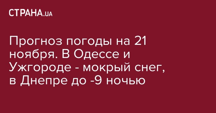 В среду, 21 ноября, в Украине сохранится прохладная погода: ночью во всех регионах ожидается небольшой минус, а днем температура воздуха будет подниматься незначительно выше нуля. Об этом свидетельствует прогноз, опубликованный на сайте Укргидрометцентра
