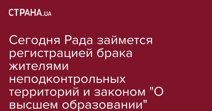 Сегодня Рада займется регистрацией брака жителями неподконтрольных территорий и законом "О высшем образовании"