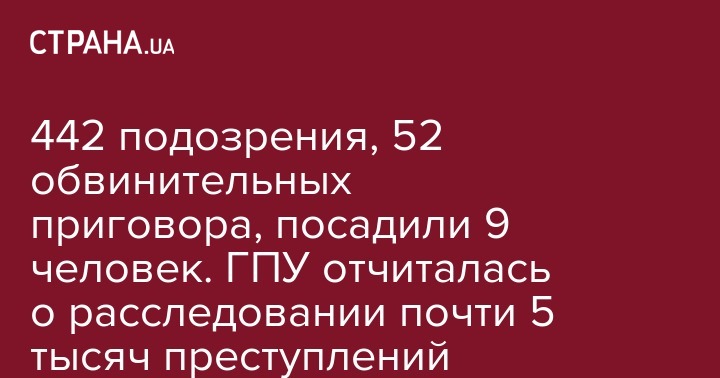 442 подозрения, 52 обвинительных приговора, посадили 9 человек. ГПУ отчиталась о расследовании почти 5 тысяч преступлений против Майдана