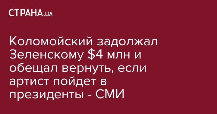 Коломойский задолжал Зеленскому $4 млн и обещал вернуть, если артист пойдет в президенты - СМИ