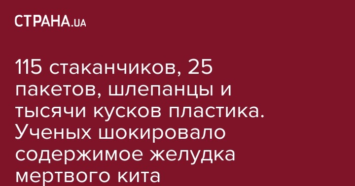 115 стаканчиков, 25 пакетов, шлепанцы и тысячи кусков пластика. Ученых шокировало содержимое желудка мертвого кита