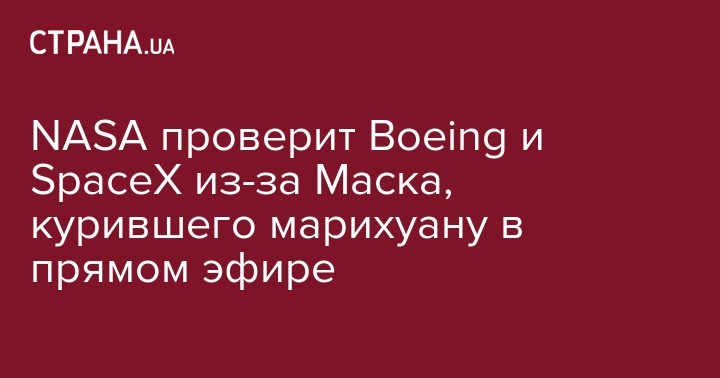 Корпорация NASA проведет крупную проверку в компаниях Boeing и SpaceX из-за видеоролика, на котором предприниматель Илон Маск пьет виски и курит марихуану. Об этом сообщает газета The Washington Post.