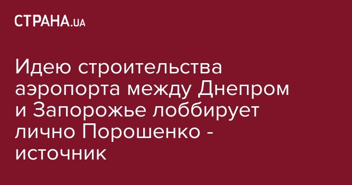 Идею строительства аэропорта между Днепром и Запорожье лоббирует лично Порошенко - источник