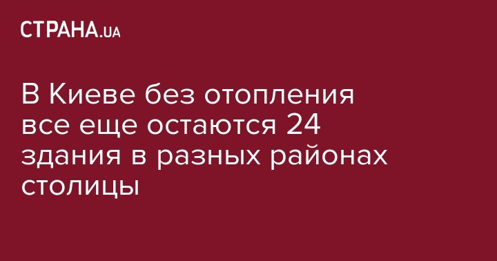За сутки аварийные бригады КП "Киевтеплоэнерго" ликвидировали 65 повреждений, без тепла остаются 24 здания, подключить которые планируют в течение нескольких дней. Об этом говорится в сообщении пресс-службы "Киевтеплоэнерго".