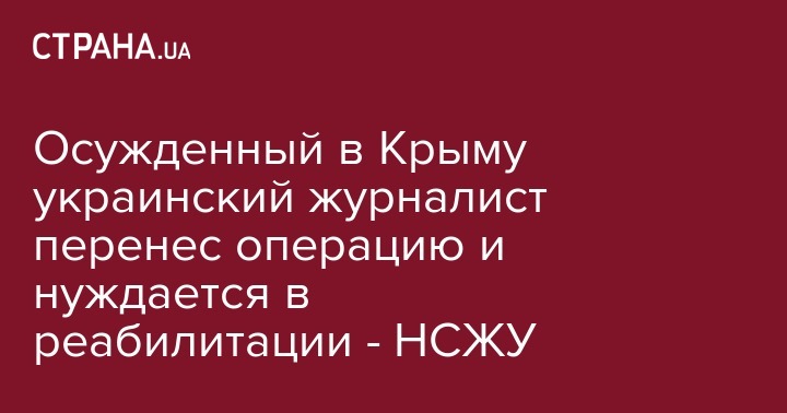 "Именно длительное преследование российской властью авторитетного журналиста, осуждение за профессию, стрессы и ограничения в общении и передвижении - причины нынешнего ухудшения состояния здоровья Николая Семены", - пишет глава НСЖУ.