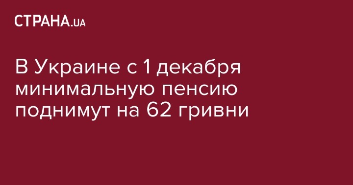 В Украине с 1 декабря минимальную пенсию поднимут на 62 гривни