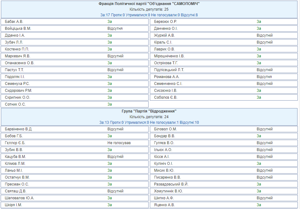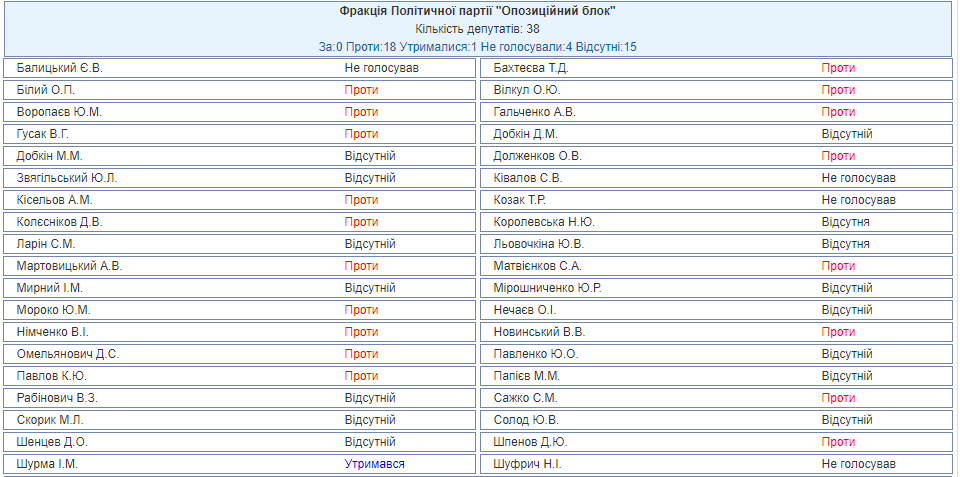 На сайте Рады появился список проголосовавших. Известно, что в БПП проголосовали 124 депутата. В Народном фронте - 73, среди внефракционых сразу 33 депутата из 60 поддержали инициативу. Оппозиционный блок проголосовал против.