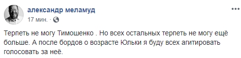 Бизнесмен Александр Меламуд: "Терпеть не могу Тимошенко. Но всех остальных терпеть не могу ещё больше. А после бордов о возрасте Юльки я буду всех агитировать голосовать за неё".