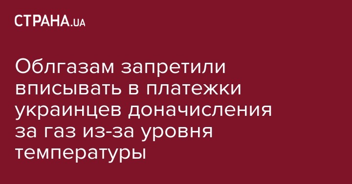 Национальная комиссия госрегулирования энергетики и коммунальных услуг запретила операторам газораспределительных систем проводить доначисления в платежки за природный газ из-за температуры. Об этом написала глава НКРЭКУ Оксана Кривенко на своей странице в Facebook.