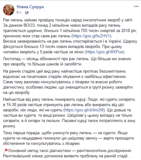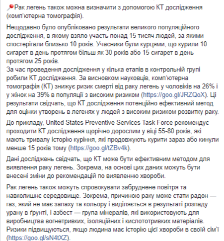 "Данные исследований свидетельствуют, что КТ может быть эффективным методом для обнаружения рака легких. В частности, на основе этих данных могут быть внесены изменения к рекомендациям по выявлению болезни", - говорит Супрун.