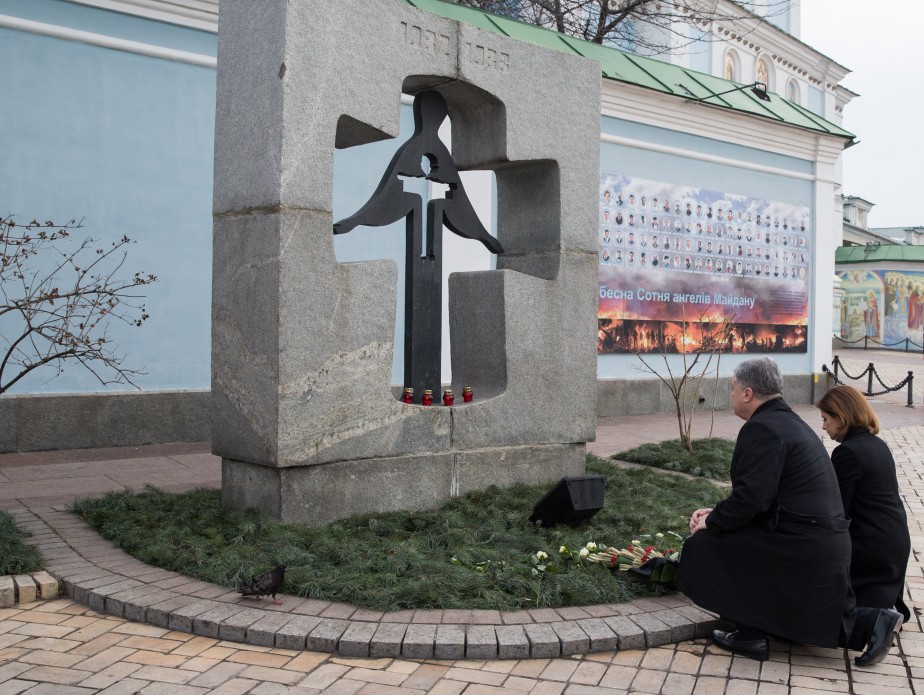 Мероприятия при участии президента прошли на Михайловской площади в Киеве, у Памятного знака жертвам Голодомора 1932-1933 годов в Украине. Петр и Марина Порошенко возложили  колосковые композиции к мемориалу. Также у памятного знака были установлены зажженные лампадки.