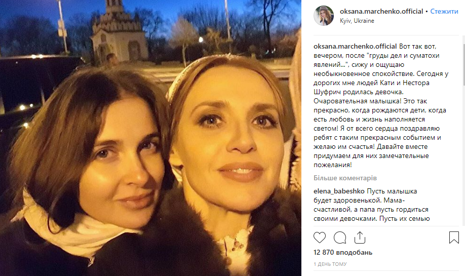 "Сегодня у дорогих мне людей Кати и Нестора Шуфрич родилась девочка. Очаровательная малышка! Это так прекрасно, когда рождаются дети, когда есть любовь и жизнь наполняется светом! Я от всего сердца поздравляю ребят с таким прекрасным событием и желаю им счастья!", - написала она в Instagram.