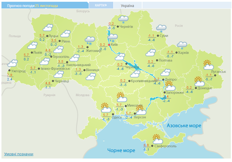 Прогноз погоды на 25 ноября. Сегодня в Украине будет холодно, местами снегопады