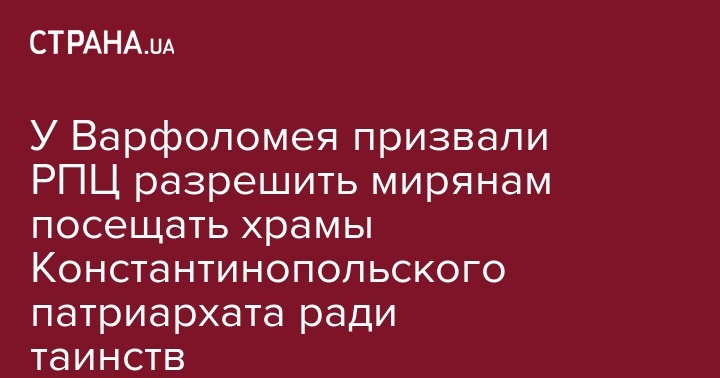 У Вселенского патриарха Варфоломея призвали РПЦ разрешить ее мирянам причащаться в храмах Константинопольского патриархата. Такое заявление сделал Архиепископ Хариопольский Иоанн, экзарх православных русских церквей в Западной Европе, сообщает "Интерфакс".