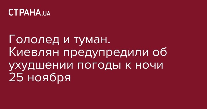 "В ближайший час, ночью и утром 26 ноября ожидеатся туман, видимость 200-500 м, гололед, на дорогах местами гололедица. Городская власть призывает киевлян при возможности воздержаться от поездок на собственных авто", - предупредили чиновники.
