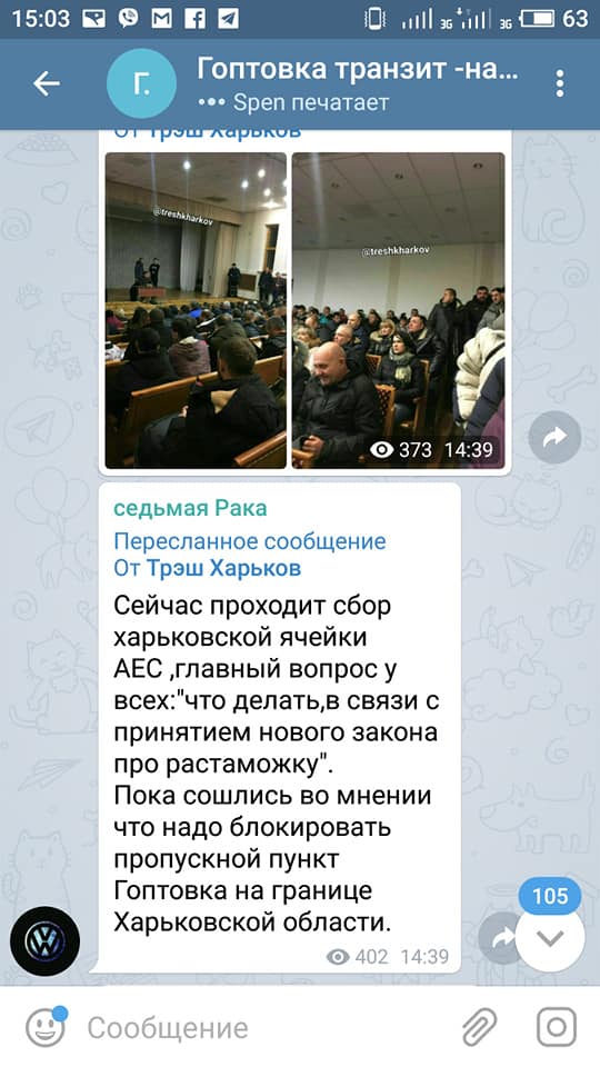 Ранее журналист Евгений Плинский на своей странице в Facebook рассказал, что на сборах активисты обсудили планы о блокировке КПП Гоптовка с 20:00 25 ноября.