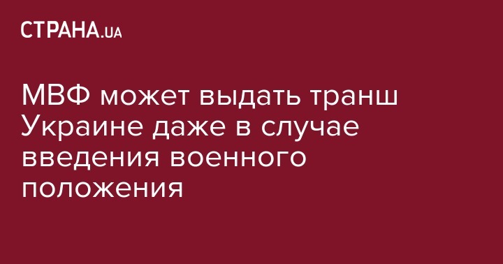 Международный валютный фонд продолжит сотрудничество с Украиной, даже если в стране будет введен режим военного положения. Об этом со ссылкой на пресс-службу киевского офиса МВФ пишут "Украинские новости".