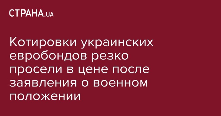 На фоне информации о возможном введении военного положения в стране 26 ноября котировки еврооблигаций Украины резко снижаются в стоимости. Об этом сообщает "Интерфакс".