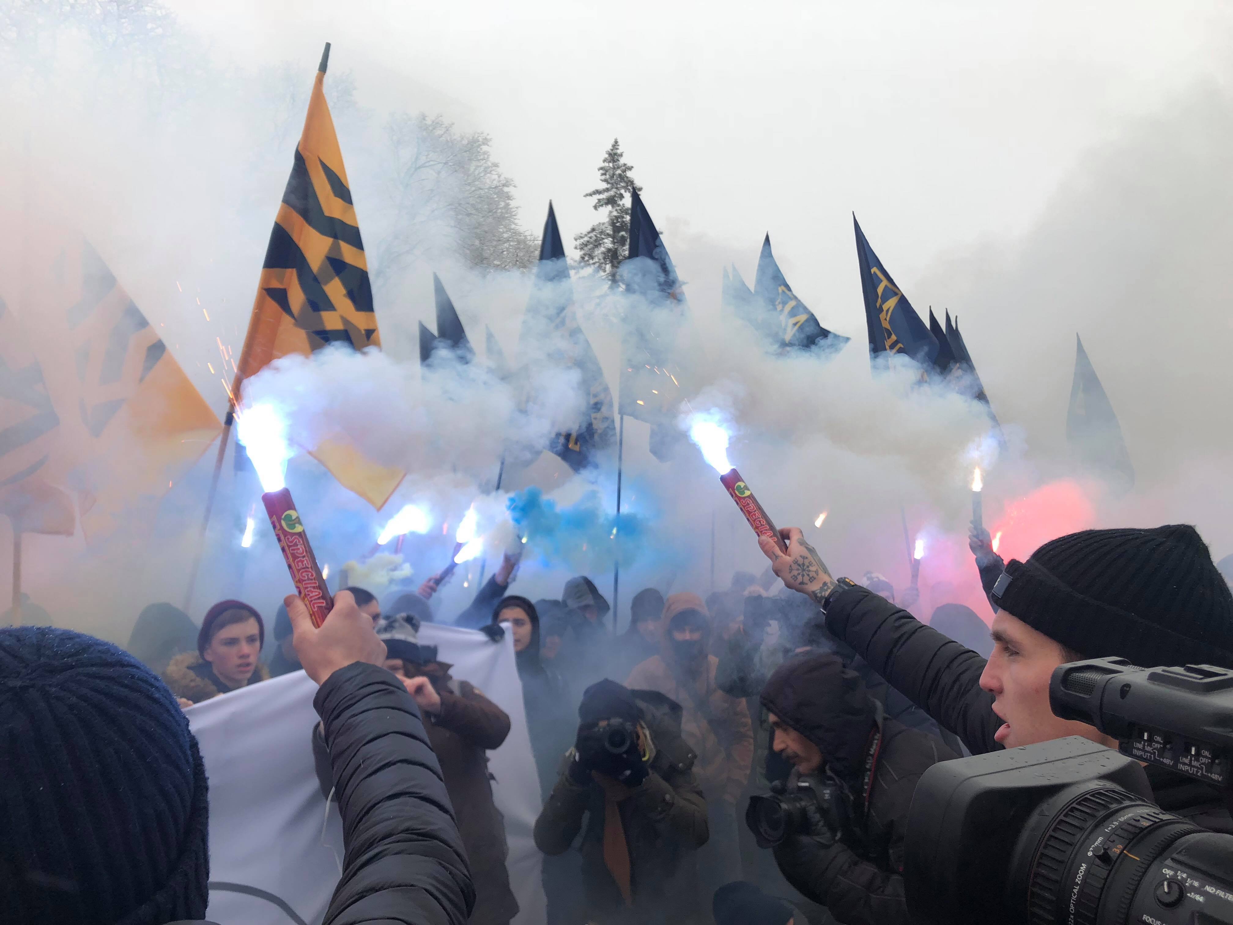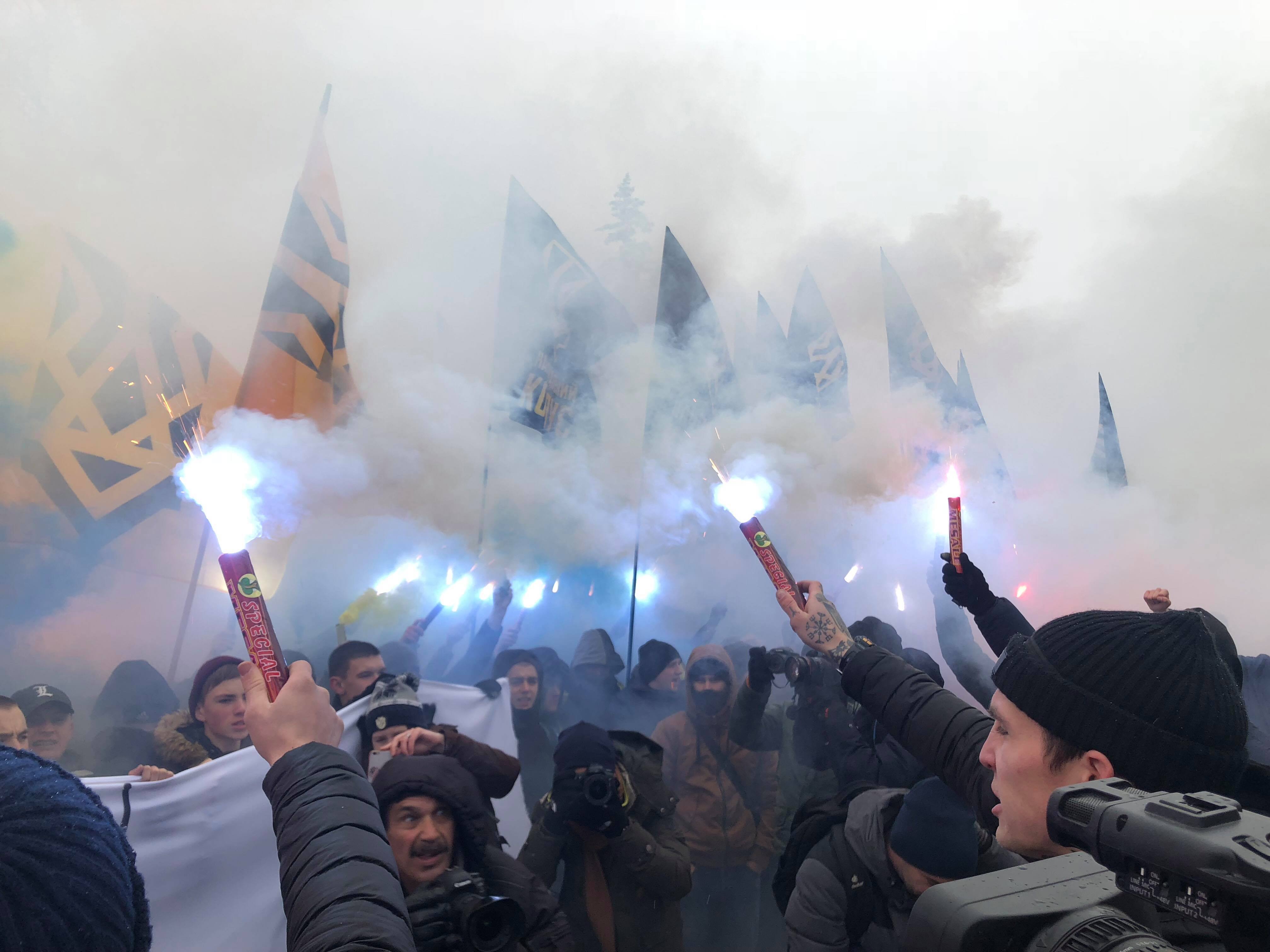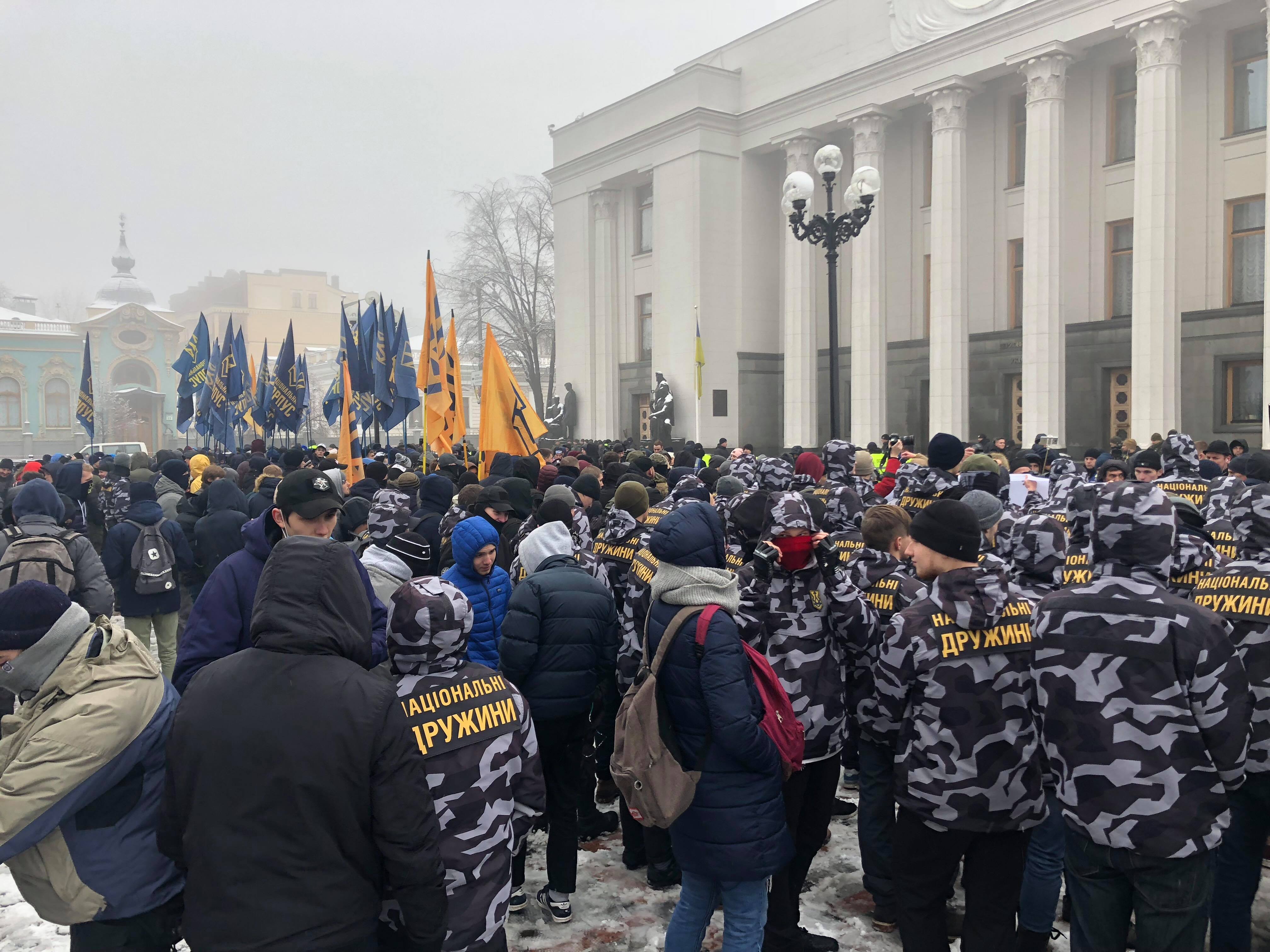 26 ноября днем проходит акция протеста под стенами Верховной Рады Украины в Киеве. Ее проводят активисты "Азова" и "Национального корпуса". Об этом сообщает корреспондент "Страны" с места событий.