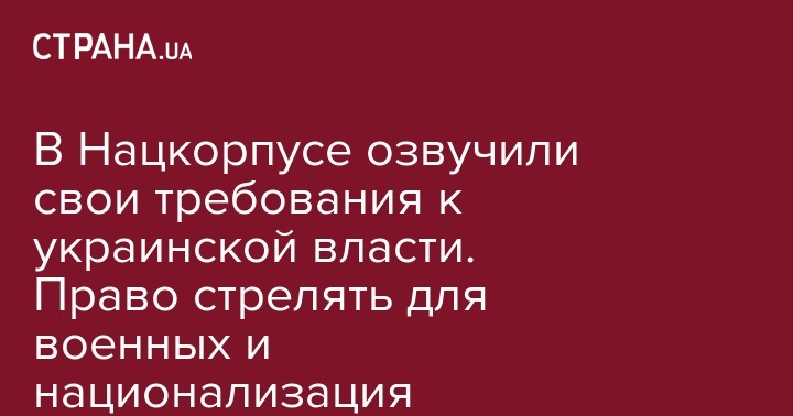 В Нацкорпусе озвучили свои требования к украинской власти. Право стрелять для военных и национализация имущества РФ
