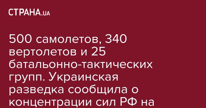 Так, по данным украинской разведки, Россия разместила вдоль границы с Украиной около 500 боевых самолетов тактической авиации и 340 вертолетов армейской авиации, а также 25 батальонно-тактических групп. При этом боевой радиус самолетов позволит покрыть всю территорию нашей страны, утверждает Скибицкий.