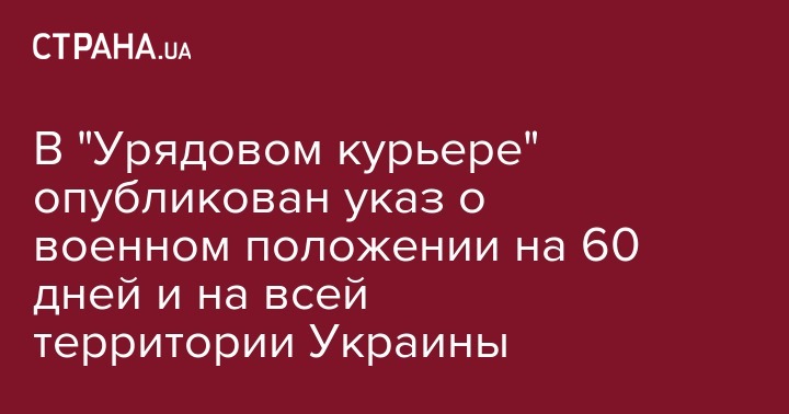 В правительственной газете "Урядовый курьер" от 27 ноября опубликован указ президента, которым военное положение вводится на 60 дней и на всей территории Украины.