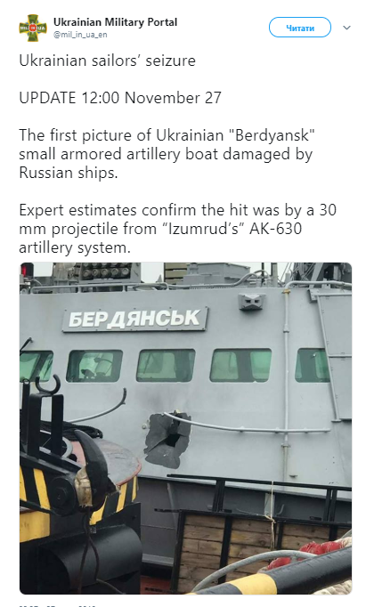 Также мы сообщали, что два украинских моряка получили серьезные ранения во время морского конфликта