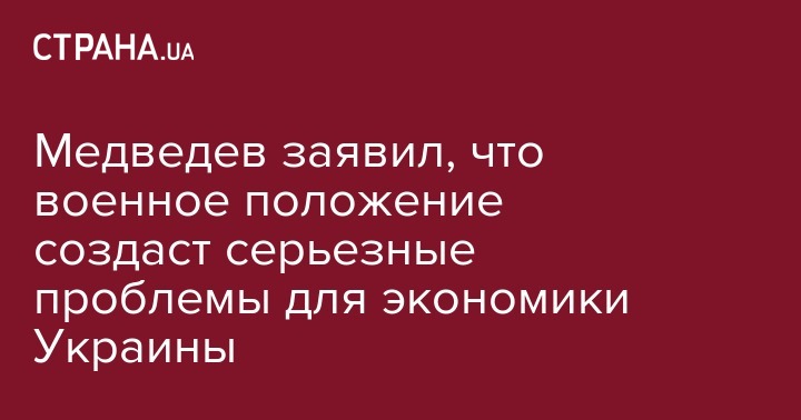 Введение Украиной военного положения создаст серьезные проблемы для ее экономики и отрицательно скажется на отношениях с Россией, заявил премьер-министр РФ Дмитрий Медведев, передает "Интерфакс".