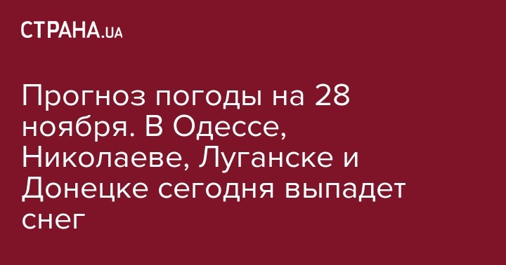 Прогноз погоды на 28 ноября. В Одессе, Николаеве, Луганске и Донецке сегодня выпадет снег