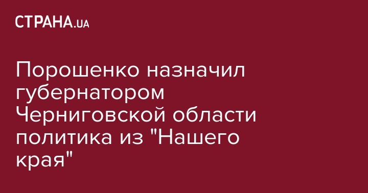 Президент Петр Порошенко представил нового председателя Черниговской областной государственной администрации Александра Мысника, который является представителем партии "Наш Край". Об этом сообщается в Twitter Порошенко.