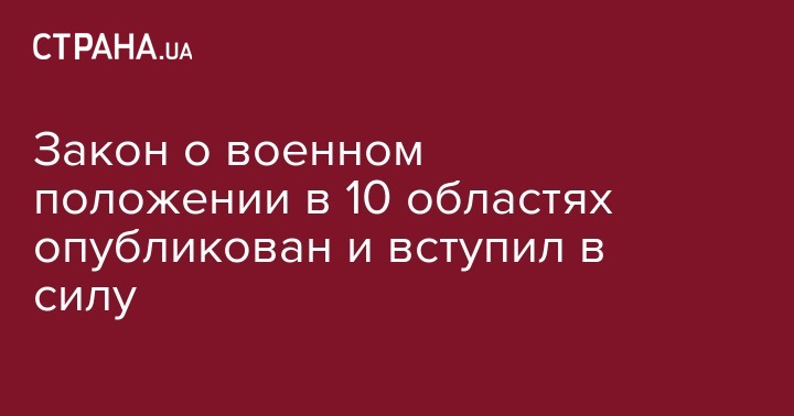 Закон о введении в Украине военного положения вступил в cилу, поскольку документ опубликовали в парламентской газете "Голос Украины" днем в среду.