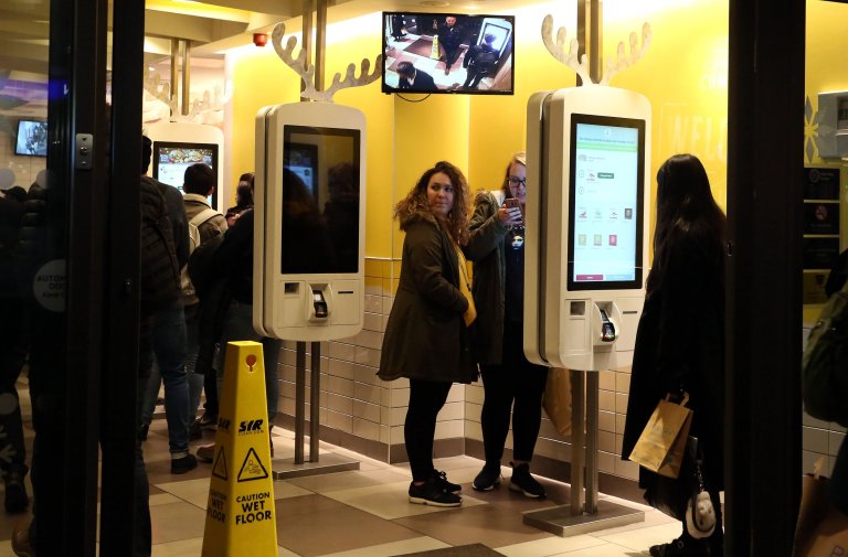 Чтобы ускорить процесс заказа еды, посетители могут воспользоваться сенсорными терминалами, которые имеются в заведениях McDonald's по всему миру. Затем посетители забирают свои блюда со стойки, часто без мытья рук.