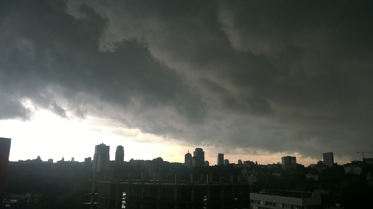 Вечер пятницы, 10 июня в Киеве оказался испорчен ужасной погодой. Очень быстро над городом собрались иссиня-черные тучи, поднялся шквальный ветер, а ливень в некоторых районах столицы сопровождался сильным ветром и перемежался с градом.