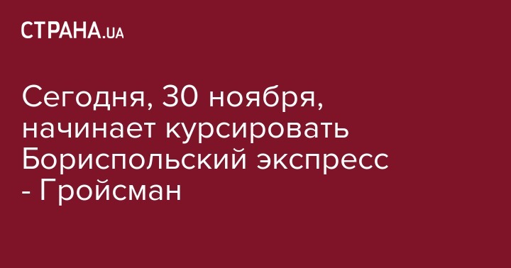 Сегодня, 30 ноября "Укрзализныця" запускает железнодорожный экспресс из Международного аэропорта "Борисполь" в центр Киева. Об этом премьер-министр Владимир Гройсман сообщил в Facebook.