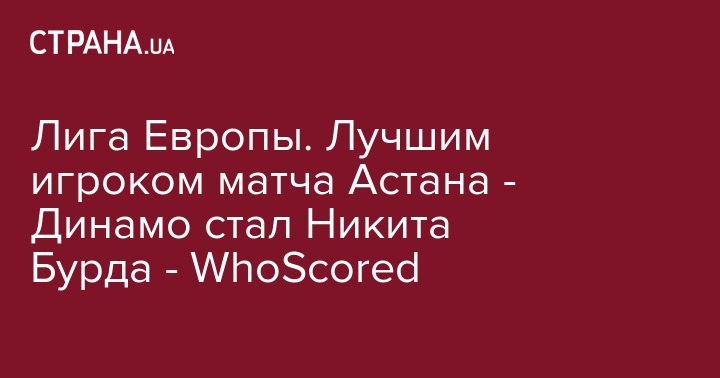 Лучшим игроком матча Лиги Европы Астана - Динамо, по версии авторитетного ресурса WhoScored, признан центральный защитник вице-чемпиона Украины Никита Бурда.