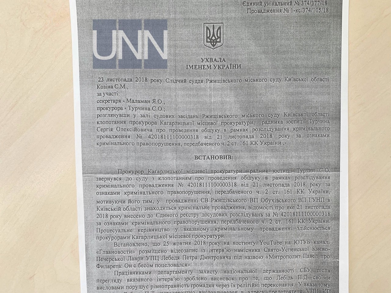 Уголовное производство открыто после одного из интервью Митрополита Павла. В определении суда говорится "25 октября 2018 на хостинге YouTube на ЮТУБ. Канале "Главновости" размещено видеозапись с интервью наместника Свято-Успенского Киево-Печерской Лавры УПЦ Лебедя Петра Дмитриевича под названием" Митрополит Павел о Филарете: Он с бесом поцеловался" .