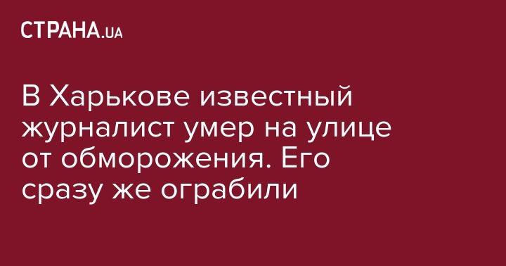 В Харькове известный журналист умер на улице от обморожения. Его сразу же ограбили
