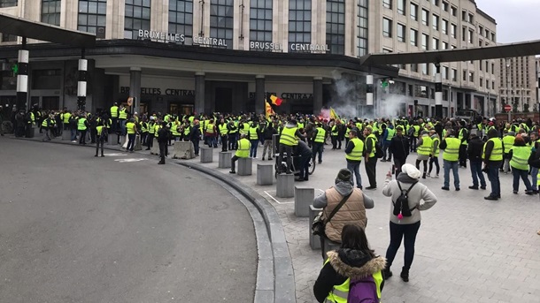 В Брюсселе из-за протестов "желтых жилетов" заблокировали дорогу возле квартала учреждений ЕС