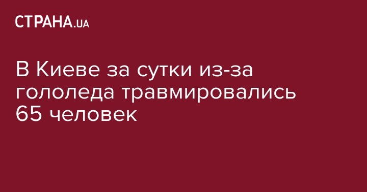 По словам пресс-секретаря Департамента здравоохранения Киевской городской администрации Натальи Вишневской, из 65 травмированных, восемь - дети, 57 - взрослые. "Все 65 обращений к медикам были из-за полученных травм в результате погодных условий на улице, а именно - гололеда", - уточнили в КГГА.