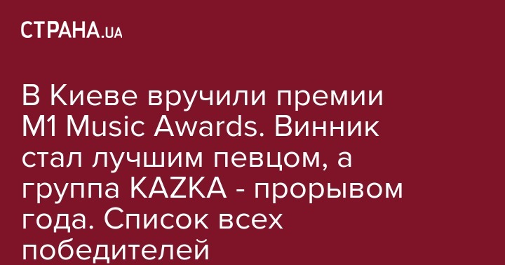 В Киеве вручили премии M1 Music Awards. Винник стал лучшим певцом, а группа KAZKA - прорывом года. Список всех победителей