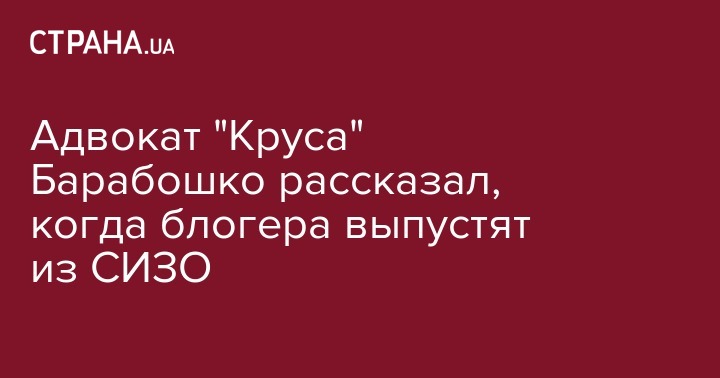 Андрей Смирнов, адвокат Александра "Круса" Барабошко, который проходит по делу о "секс-скандале в ГБР", рассказал, что блогера могут выпустить из СИЗО сегодня ближе к вечеру. Об этом адвокат Смирнов заявил "Стране" в видеоинтервью.