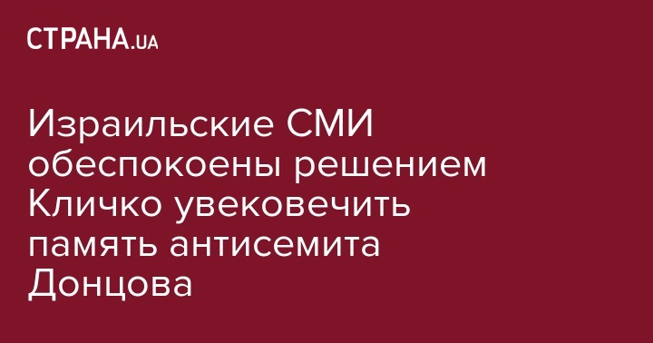 После того как городские власти Киева приняли решение увековечить память писателя Дмитрия Донцова, идеолога украинского национализма, известного своими антисемитскими взглядами, в СМИ Израиля поднялась волна возмущения таким решением.